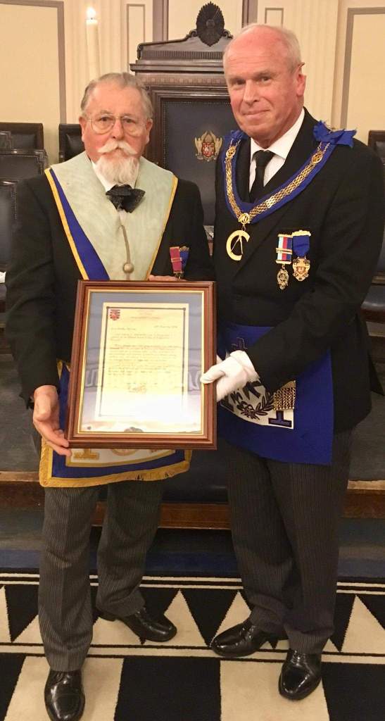 Robert believes his paternal grandfather joined the Craft whilst serving in the British Army in India before the First World War. His father was a mason and was initiated in Priory of Lambeth Lodge No 6252 in 1951. His maternal grandfather was a Scottish Rite freemason but was killed in the first world war. Robert as a youngster lived in turbulent times and was evacuated to St Ives Cornwall in 1940 and experienced the air raids and the Battle of Britain.